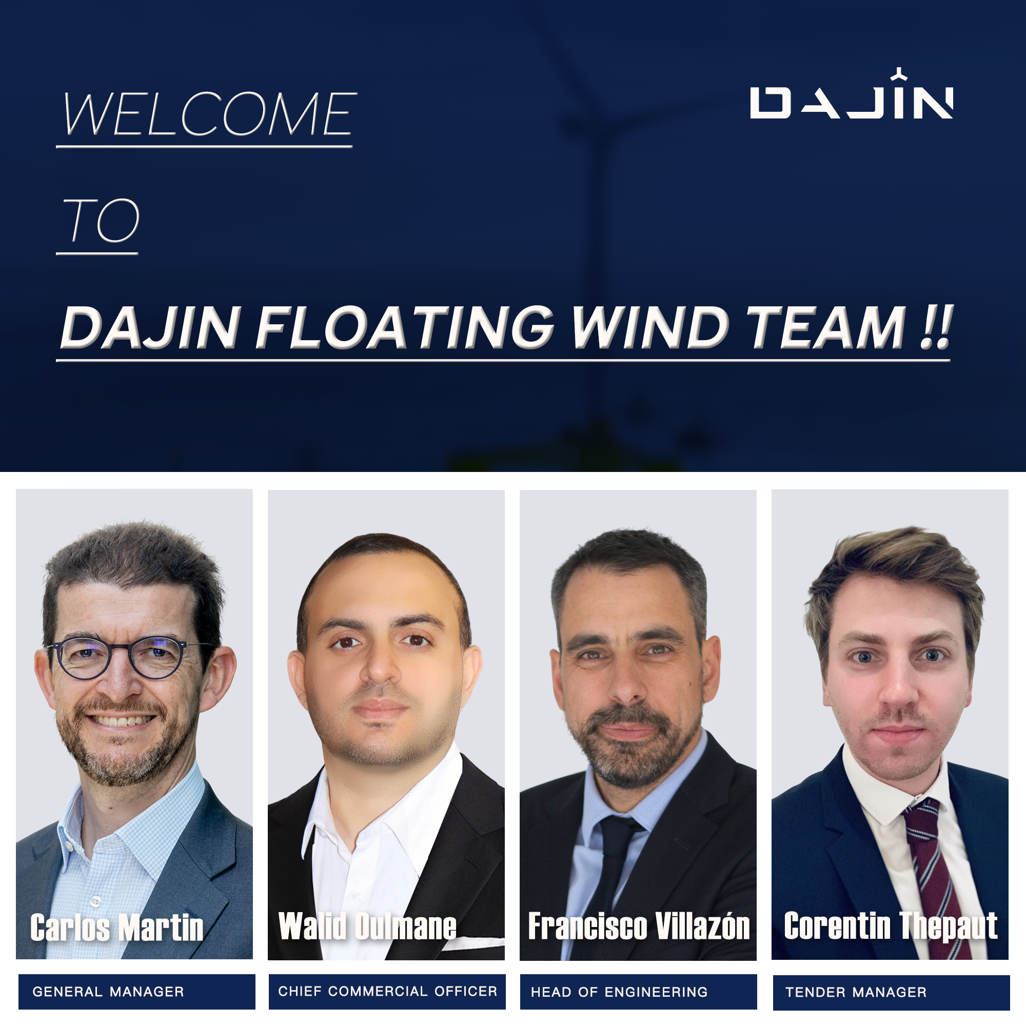 四位行业精英的加入将为我们的浮式风电业务带来丰富的专业知识与全新动力。他们在浮式风电项目开发和执行方面的丰富经验将显著提升大金的技术实力和市场竞争力。此外,公司将持续引进高端人才,进一步壮大浮式团队。