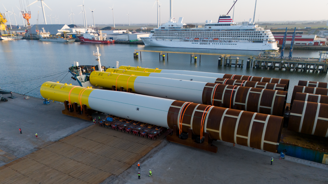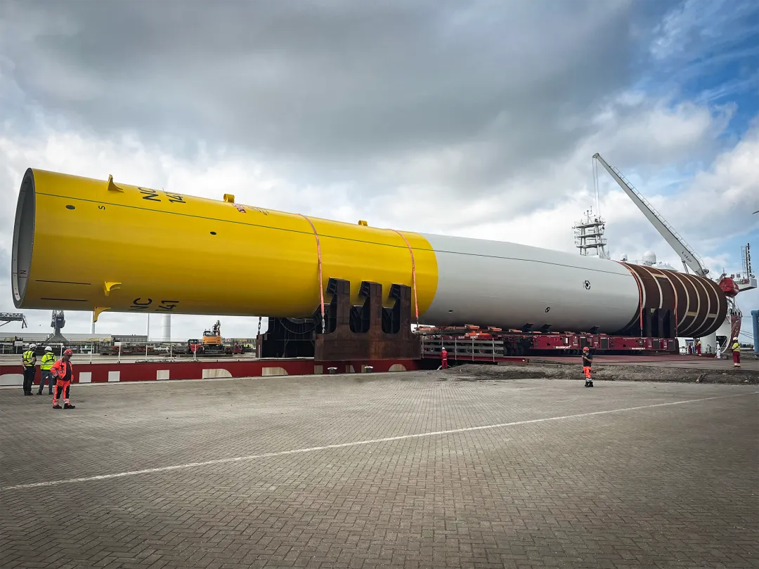 大金重工依托全球领先的制造工艺标准和质量控制体系,交付产品在生产精度、质量、规模上全面符合欧洲最高标准。伴随本项目45套超大型单桩的成功交付,大金蓬莱生产基地累计向欧洲市场供应的单桩数量已突破 200套,这一数字的背后,是大金在超大型单桩产品制造领域连续多年零质量异议的硬核业绩,彰显绝对实力。