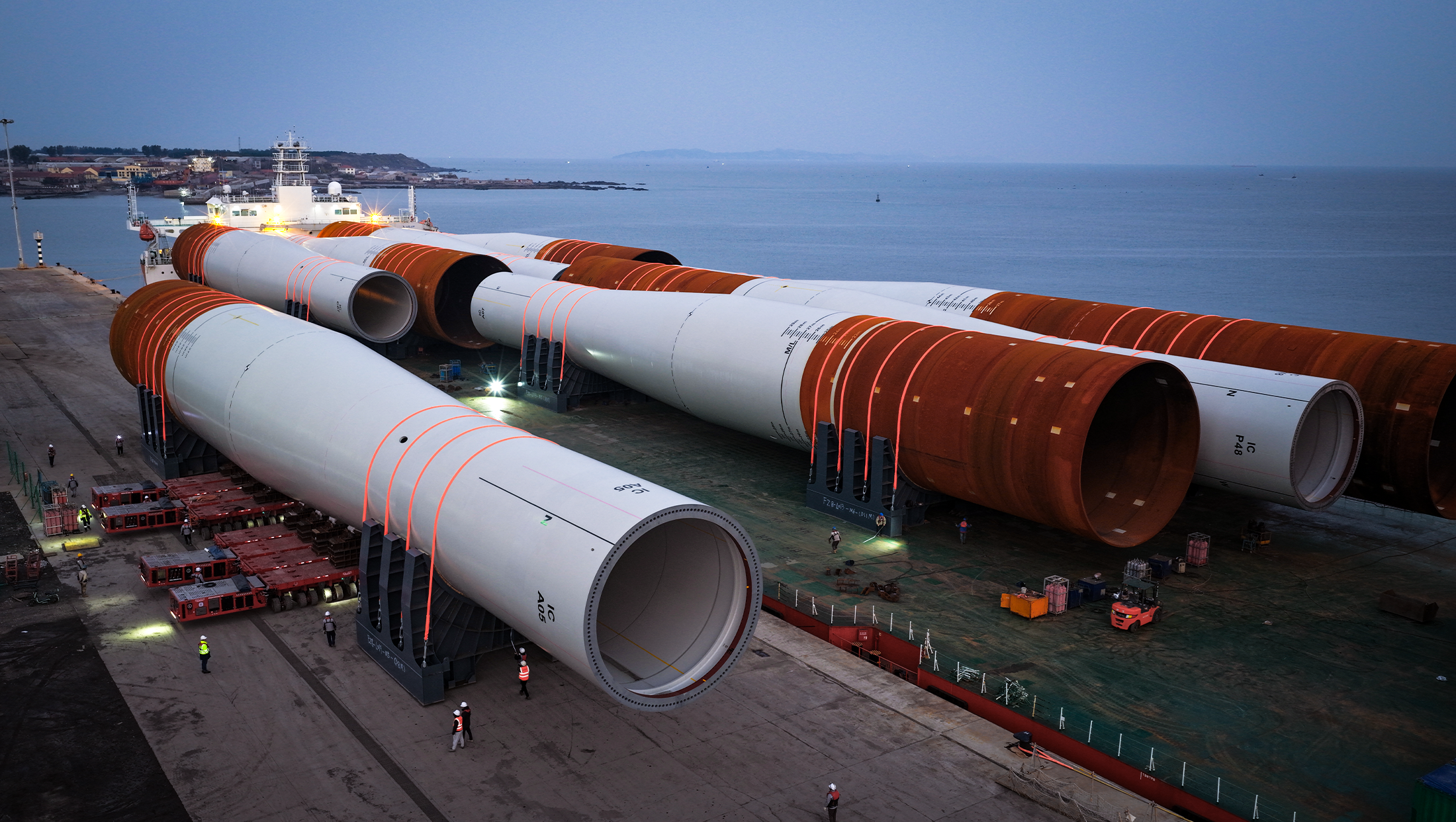 滚装装船作业的自主实现,是大金重工构建 “制造-集港-装船-运输-交付” 全产业链自主可控体系的关键一步,自主作业模式可根据客户需求灵活调整装船计划,配合后续自主运输、卸船环节,实现全流程服务响应,大幅提升客户满意度。这一产业生态的完善,推动中国风电产业从单一装备制造向全流程服务转型,为行业高质量发展提供了可复制的实践样本。