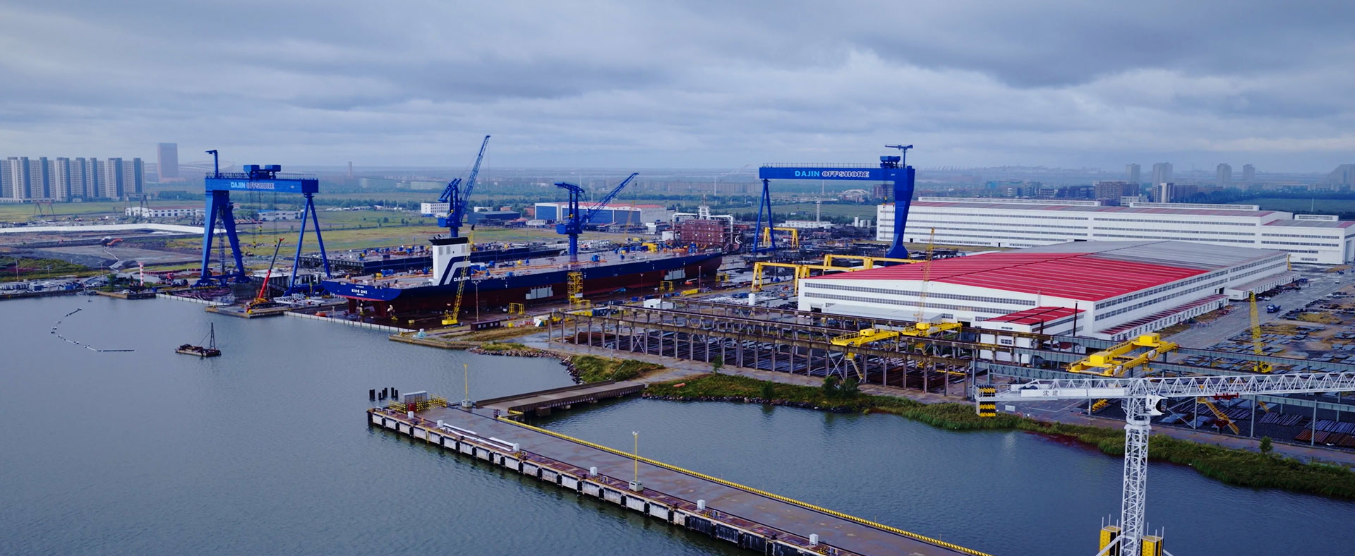 山东蓬莱生产基地,位于山东省烟台市蓬莱区,成立于2009年,产能50万吨,是全球风电海工单体最大工厂,是公司两海战略(海上风电和海外市场)的实施主体,蓬莱基地自有大件运输码头,码头岸线、水深条件优良,对出口海上风电产品的厂内物流、装船发运、起重能力优势明显,是蓬莱基地的核心竞争力,是较早涉足国内海上风电塔筒、单桩、过渡段、导管架等产品生产制造的企业,在行业内形成了较高的知名度和良好的信誉度。码头共建设5个泊位,目前对外开放的泊位共3个,2个10 万吨级顺岸泊位,水深达14.4米,1个 3.5万吨级凹槽泊位,水深9.7米,配备起重能力 1000 吨的龙门吊,2个10万吨级泊位尚未对外投入使用。可直接将超大超重产品从工厂直接发运至国内外码头以及海上风场,为大金“海上+海外”两海战略的实施以及高质量的交付保驾护航。